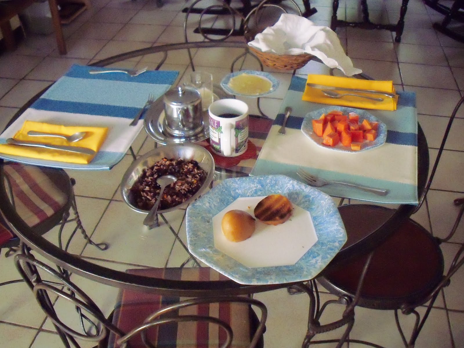Ester me prepare a typical Nicaraguan breakfast: "Gallo Pinto" (rice, blacks beans, onions, etc..), Papaya, cheese, bread toast, coffee ...